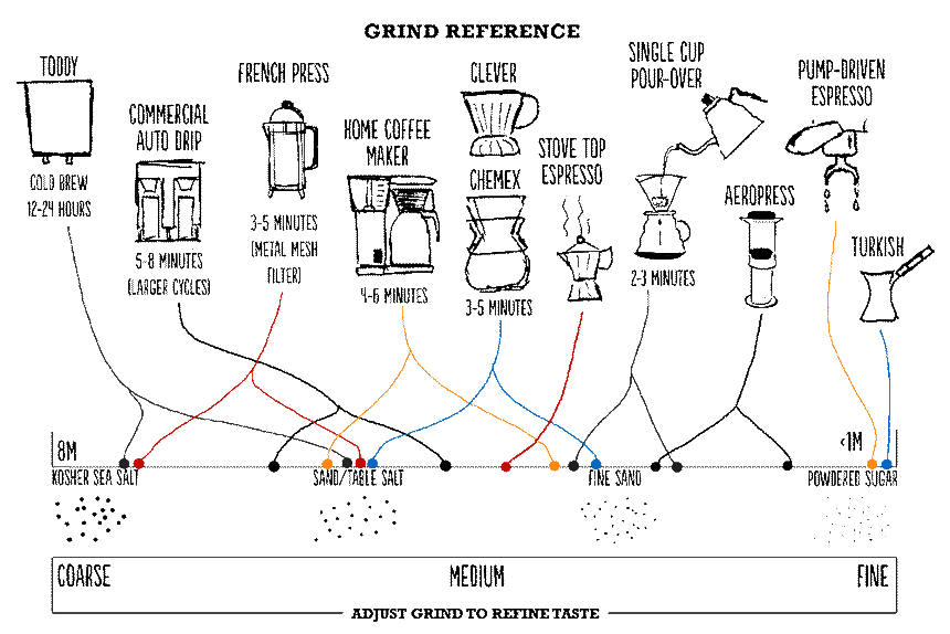 Coastal Coffee Roasters also made this beautiful Grind Reference guide, which I want to share with you! I don’t know why, but this guide makes so much sense to me and I wish I would’ve found it sooner!